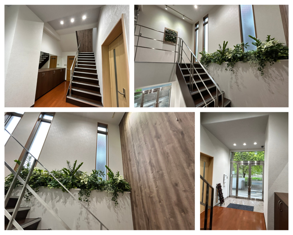 以前に行った社内緑化に合わせ、役員室及び玄関・階段を新たに改装しました。