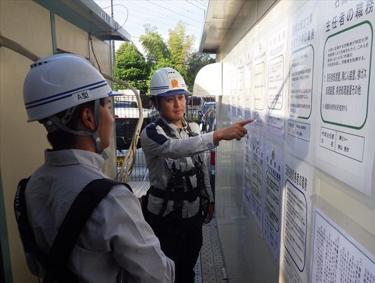 現場到着 各種施錠、工事用掲示板確認 |
