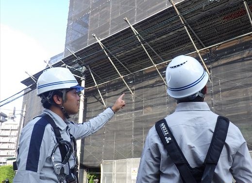大規模修繕工事現場の施工管理です。現場の管理業務はもちろんですが、管理職となり、現在は若手社員やキャリア社員の教育にも力を注いでいます。