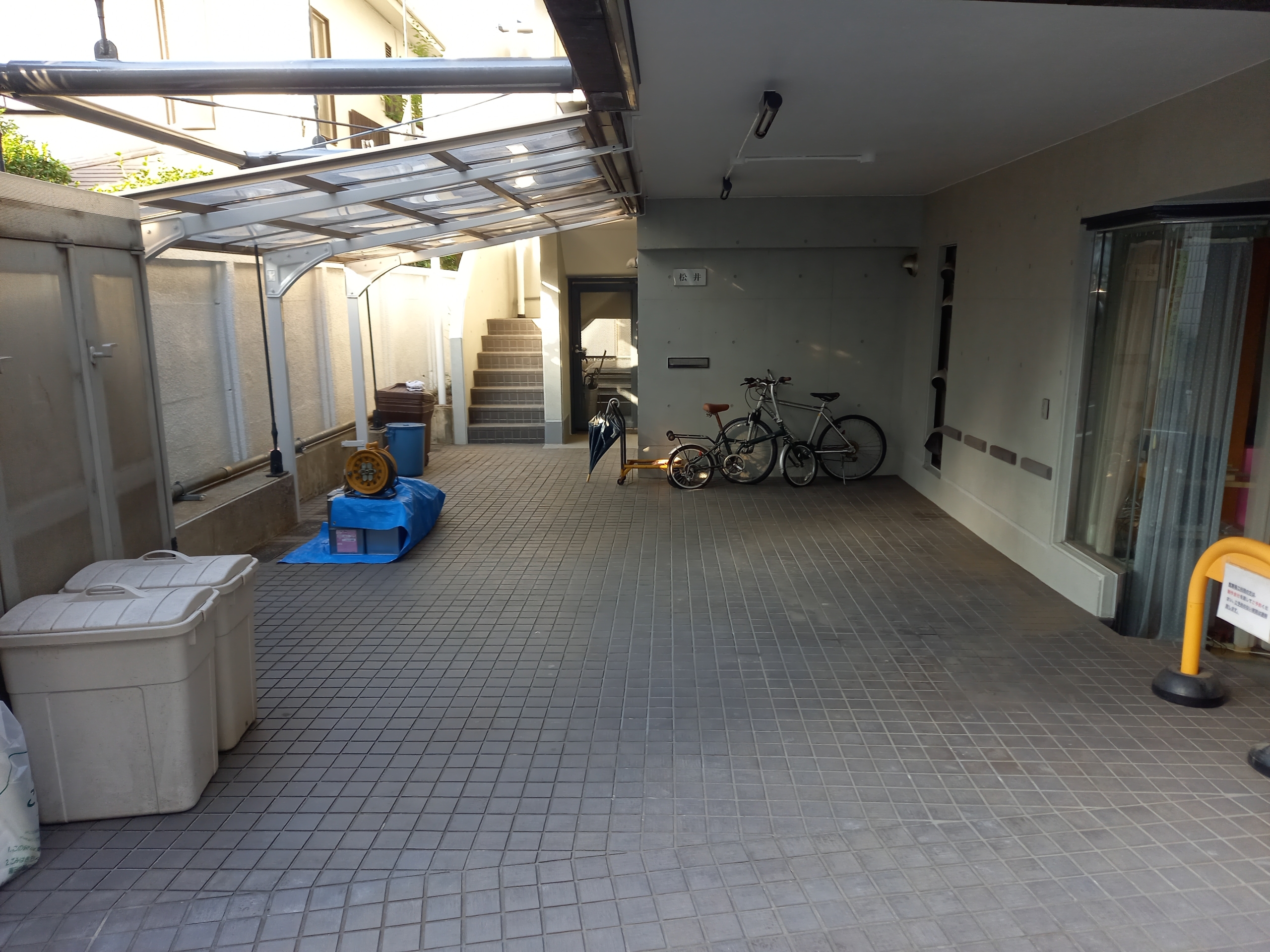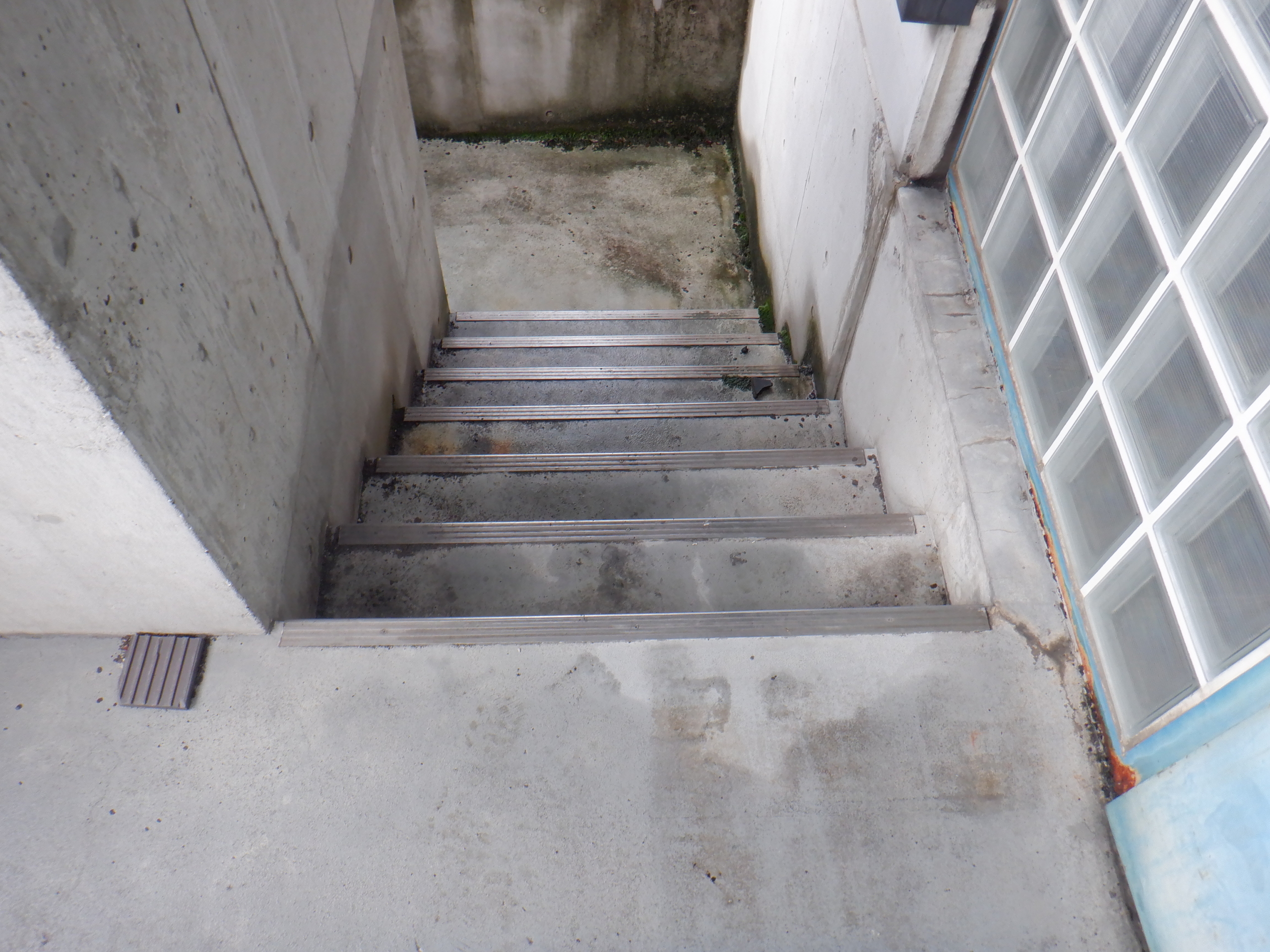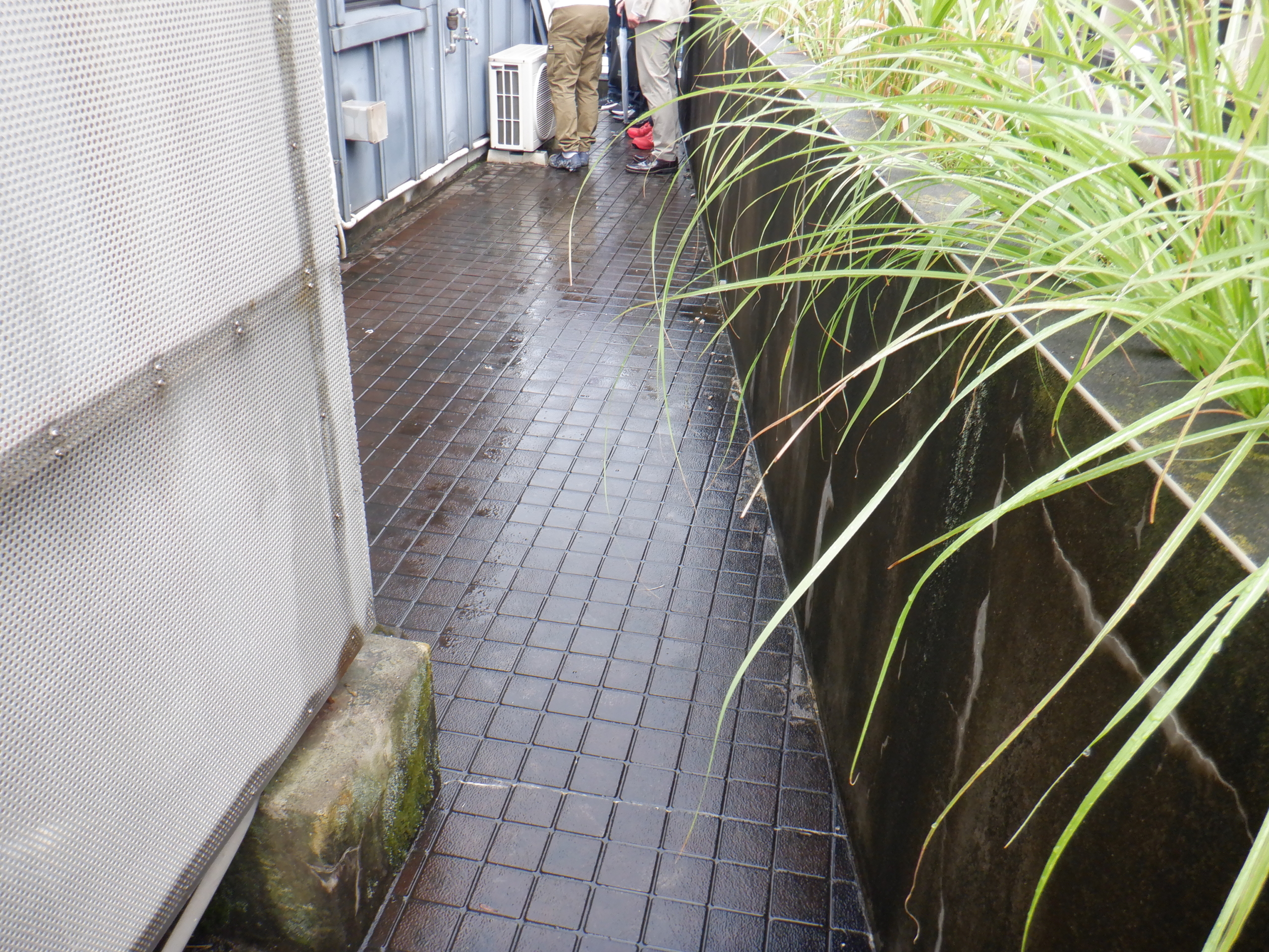 床面:タイル撤去→勾配調整・防水工事 壁面:植栽解体・撤去→補修・成形